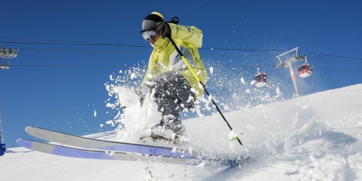 Skifahrer fährt schnell die Piste herunter © freepik